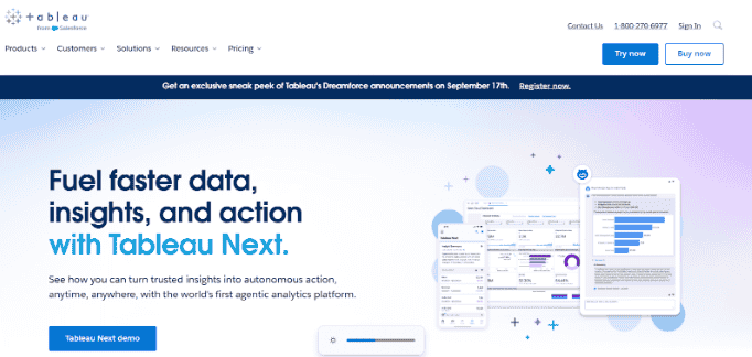 Tableau is a tool that helps businesses understand their data and show it in clear charts and graphs. It helps companies convert raw data into actionable insights. This tool also offers real-time reporting to help teams track performance.