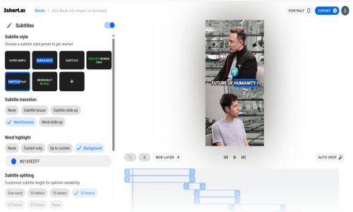 2short.ai is the Video Editing Software used for the below functionalities.