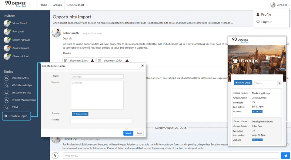90degree Team Task is the CRM Software used for the below functionalities.
