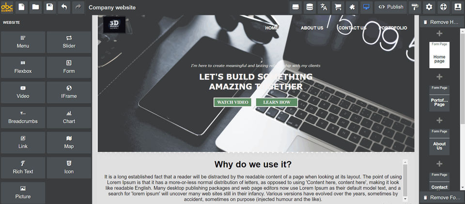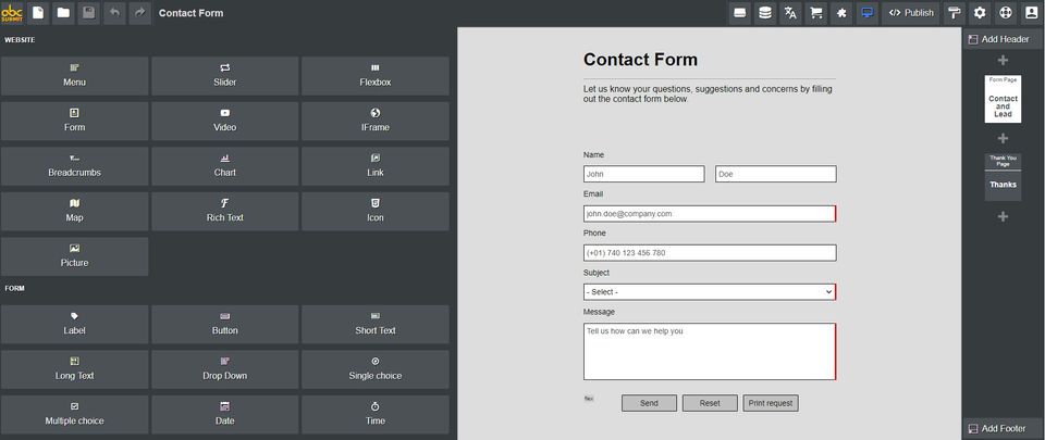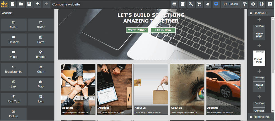 AbcSubmit is the Website Builder Software used for the below functionalities.