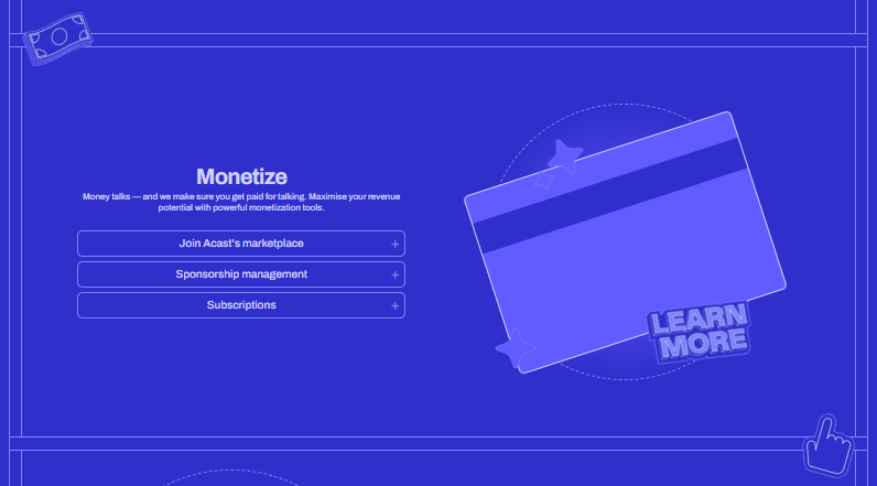 By combining hosting, promotion, analytics, and monetization into one solution, Acast empowers podcasters to grow sustainable businesses around their content.