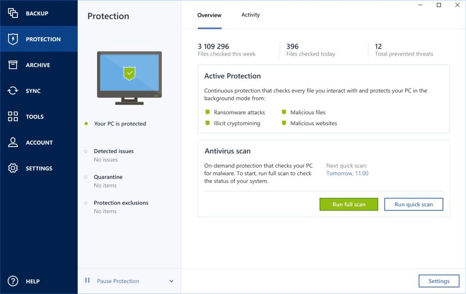 - Antimalware protecting both your device and backup data (a FREE 30-day trial)