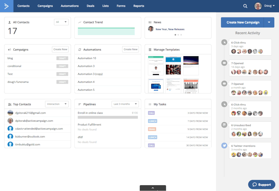 Overall I've been very impressed with ActiveCampaign. I have recommended it to numerous clients and often refer to it as the budget version of Hubspot. The UX isn't quite as great, but from a functionality perspective on the email marketing and CXA front ActiveCampaign pretty much does everything you could need it to do. It does have some limitations, just like any CRM, but overall it's a great product and for the price you really can't go wrong.