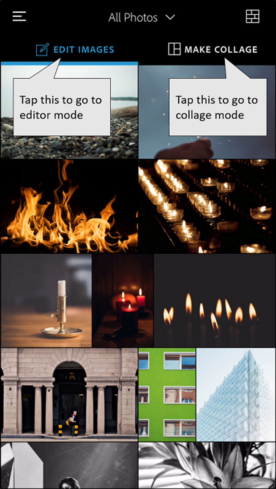Adobe Photoshop Express is the Photo Editing Software used for the below functionalities.