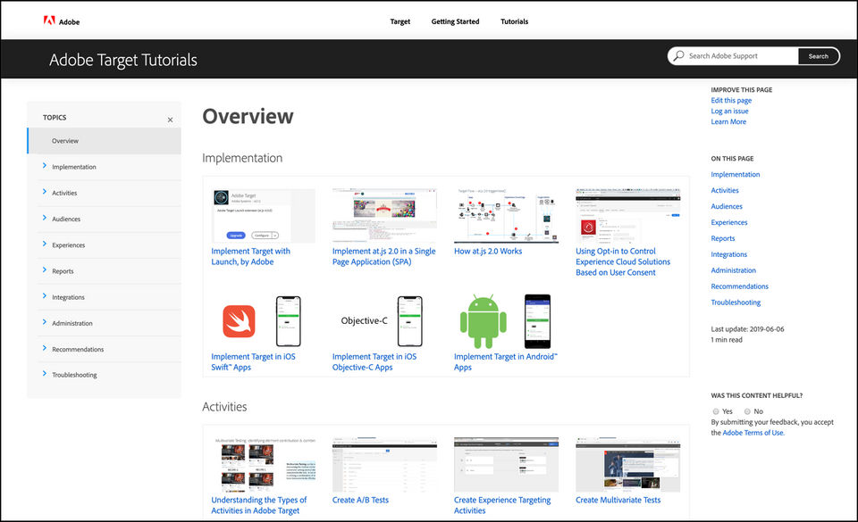 Adobe Target provides Help Guides,Blogs,Video Guides for the software training.