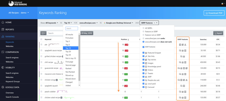 Top 5 Advanced Web Ranking features