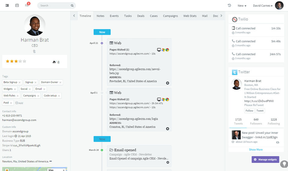Agile CRM consistently lost a lot of data - campaigns would save, and I would log out, only to return an hour later and have pieces have saved. Support could only respond that I should be capturing screen recordings (which I did and then could only say that it must be frustrating that it kept losing my work.