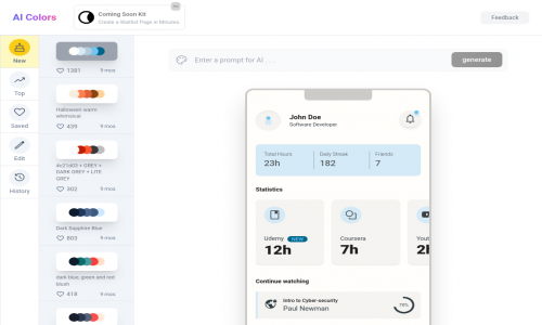 AIColors.co is an AI-powered color palette generator that allows users to create unique and beautiful color palettes for their projects. The tool uses a variety of features, including text-based color generation, pre-generated palettes, color editing, real-time visualization, color locking, and palette sharing, to help users create the perfect color palette for their needs. AIColors.co is a valuable resource for designers, artists, developers, marketers, and anyone else who works with colors.