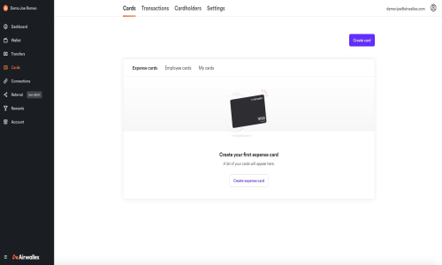 - Corporate Cards: Issue virtual and physical cards for business expenses, with real-time tracking and spending controls.