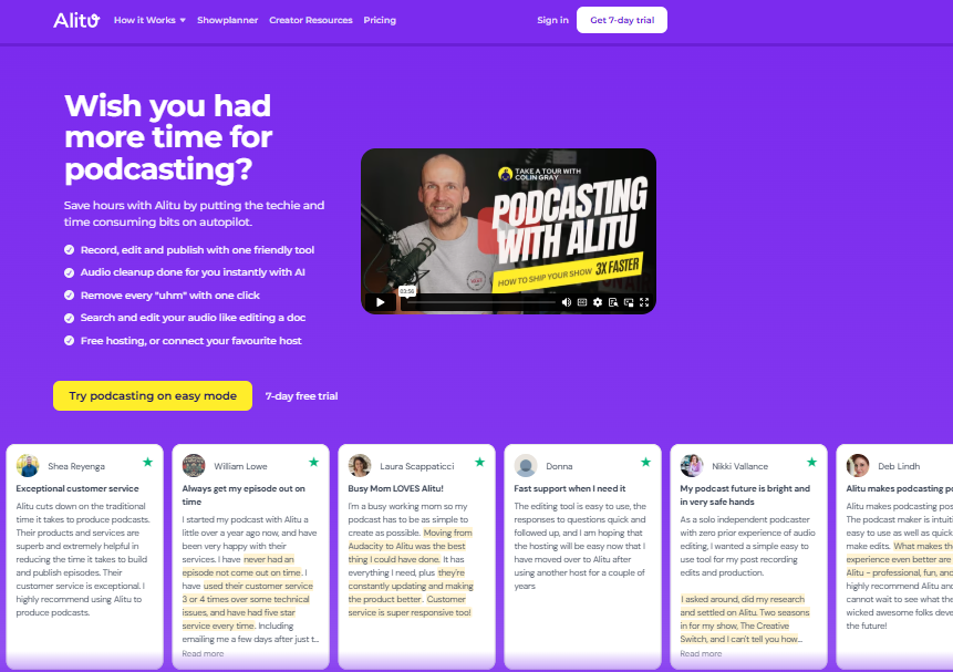 Alitu is designed as an all-in-one solution for podcasters who want to focus more on creating content rather than managing technical production. It takes the complexity out of podcasting by combining recording, editing, and publishing tools within a single platform.