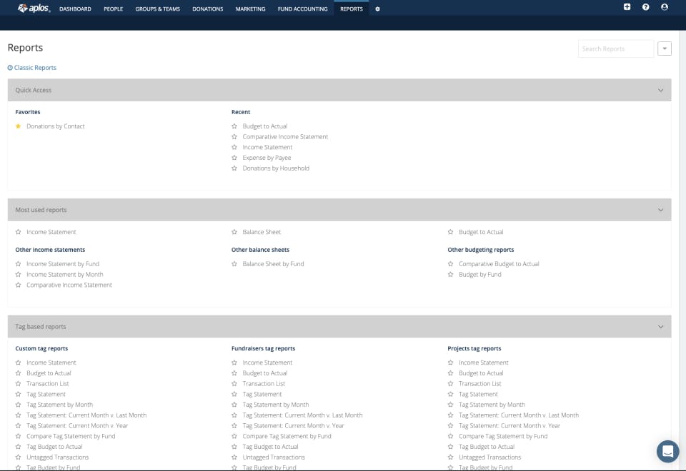 - Financial & Giving Reports