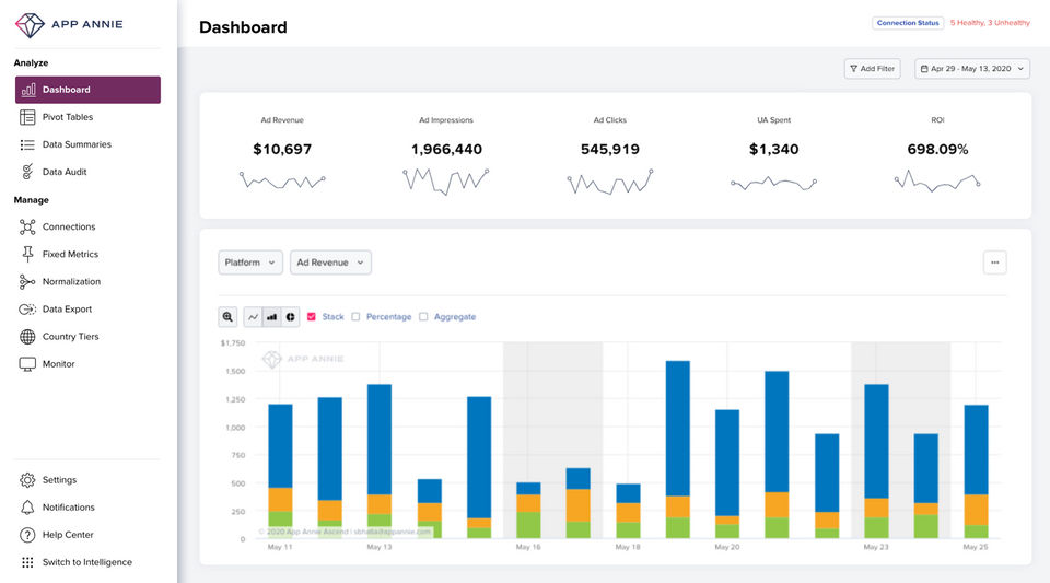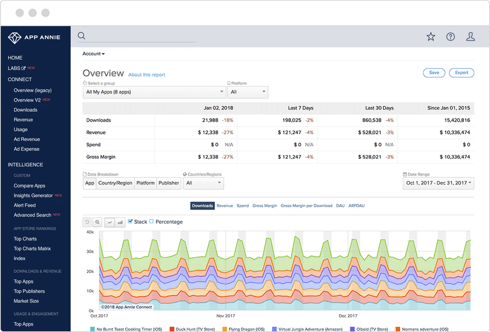 - Your own Apps’ Data – with App Annie Connect