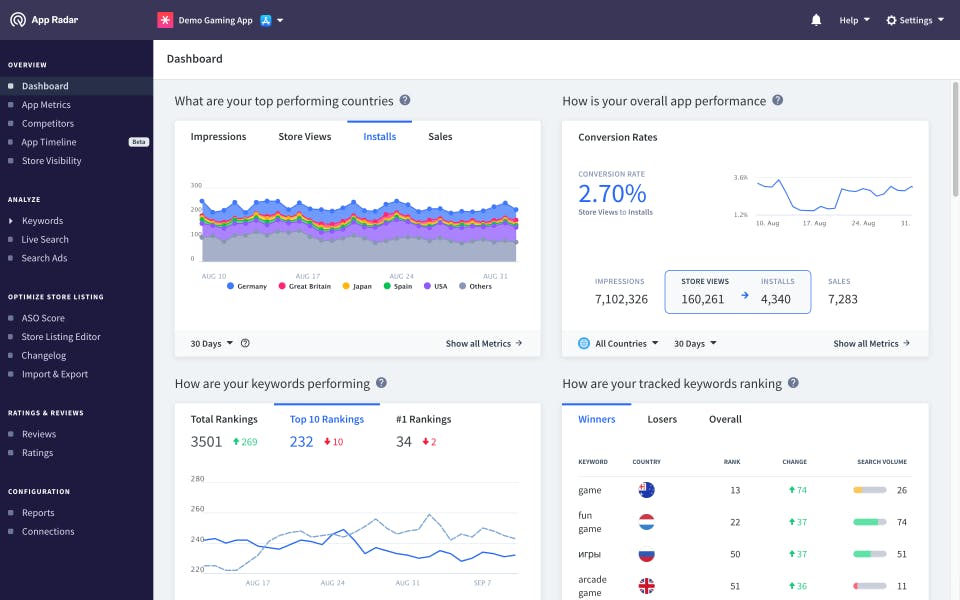 App Radar provides Blogs,Help Guides,On-Site Training,Webinars,Video Guides for the software training.