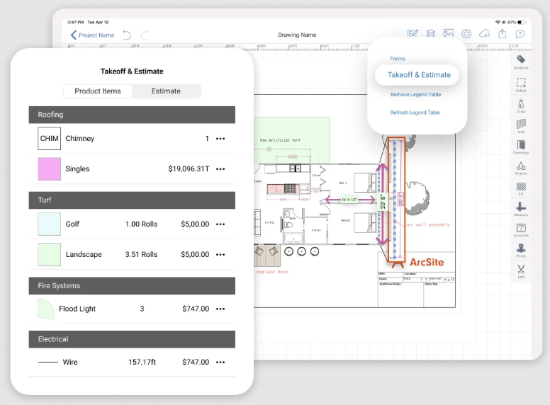 ArcSite is an innovative mobile CAD and field estimating solution built to bridge the gap between on-site design and project proposals. It enables construction professionals, contractors, estimators, and inspectors to quickly capture accurate drawings in the field, turning them into detailed takeoffs and pricing proposals—all without the complexity of traditional CAD software.