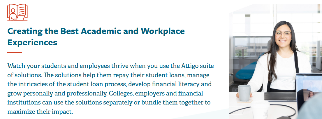 Attigo Suite: Tools and resources for colleges and employers to promote student success and financial wellness.