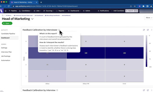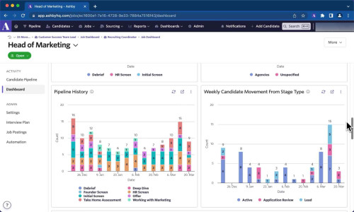 Data is critical for making informed hiring decisions. Ashby offers powerful analytics and reporting tools that track essential metrics such as time-to-hire, candidate source effectiveness, and recruiter performance. These insights help companies refine their hiring strategies and improve recruitment efficiency.