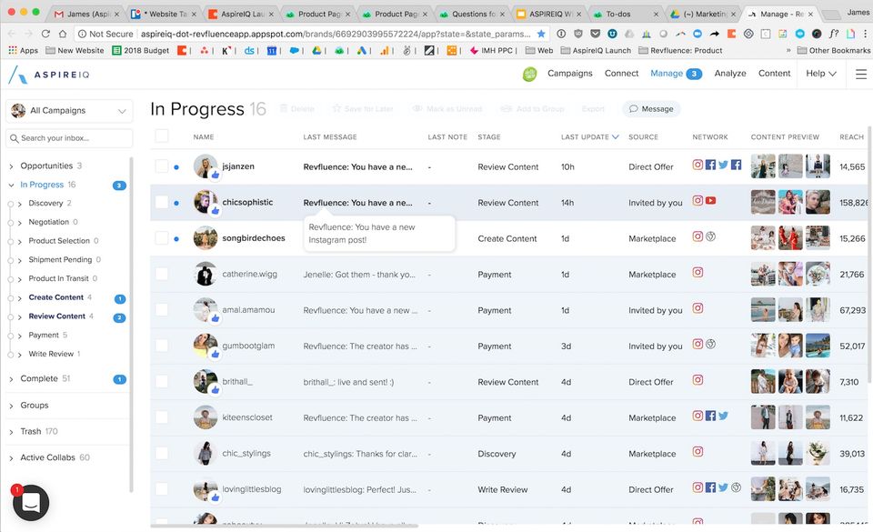 That influencers get put in to different stages based on where you are with your collab (this does get a little messy with multiple posts or if it looks like a step is skipped