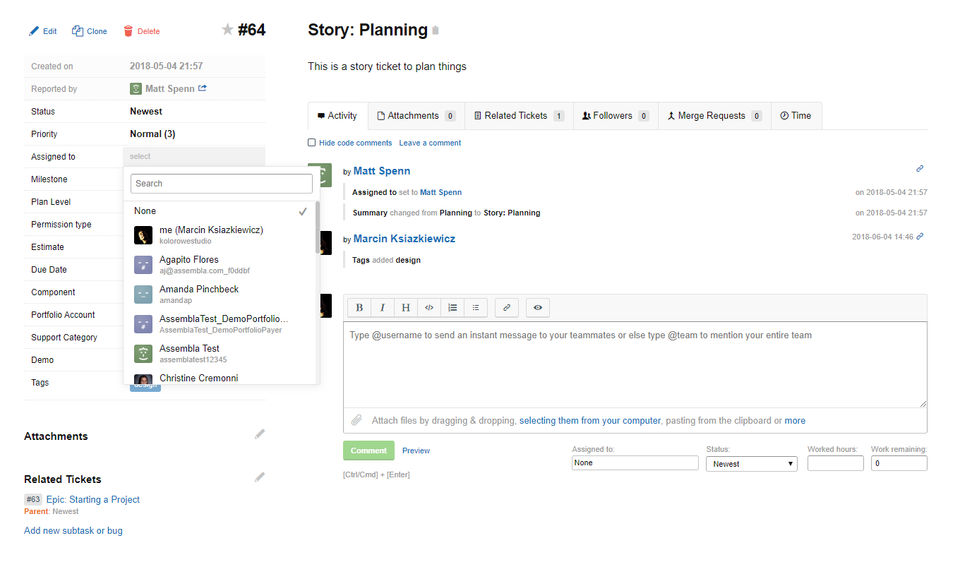 Assembla is the Project Management Software With Time Tracking used for the below functionalities.