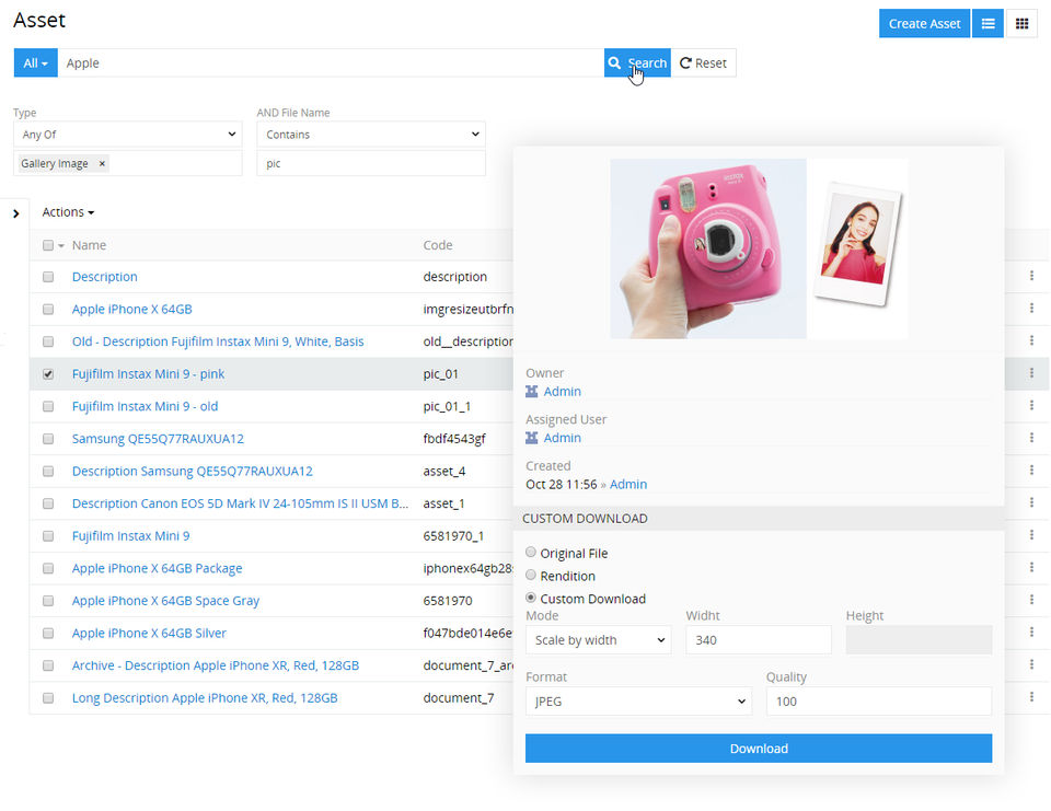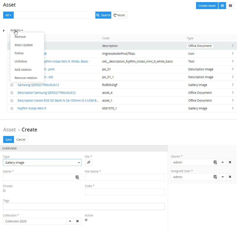 - Search for Assets