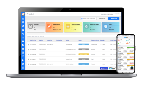 - Job Card Management – Digital job cards for tracking vehicle history, service details, and parts usage.