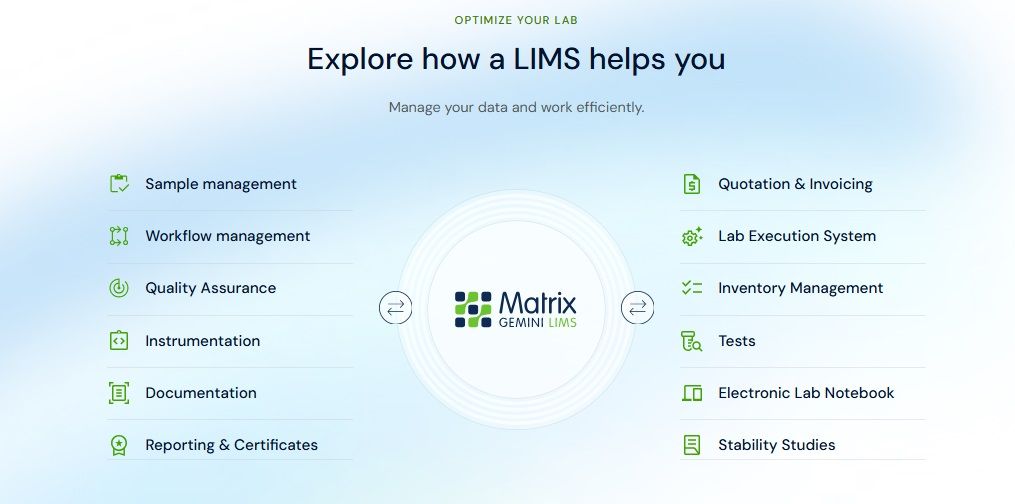 Autoscribe Informatics LIMS is the Laboratory Information Management System (LIMS) used for the below functionalities.