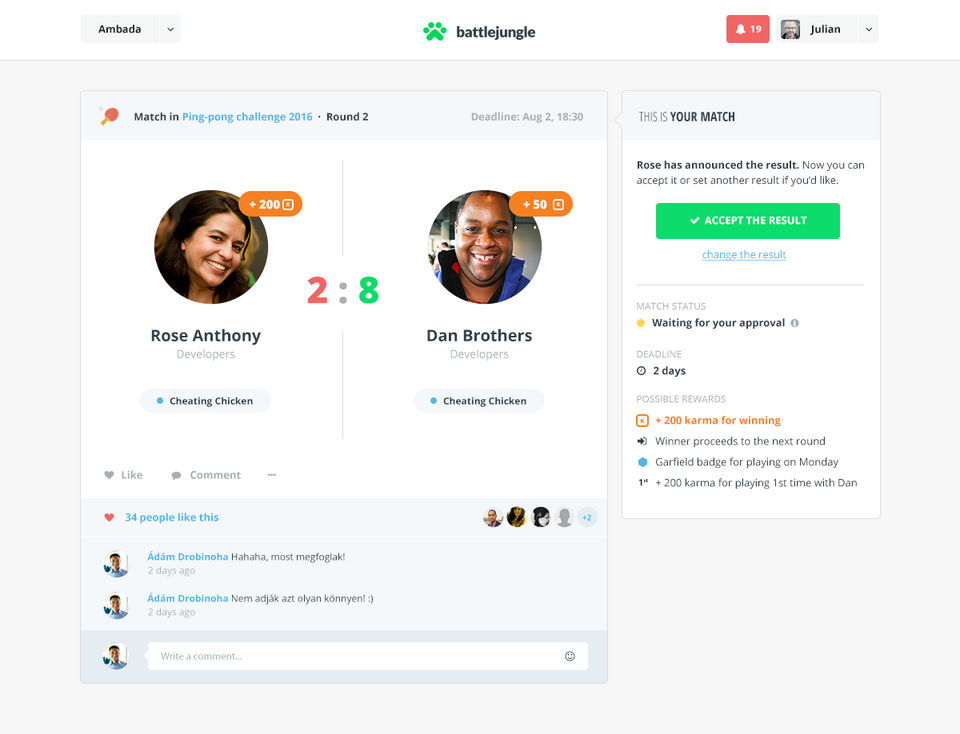 Battlejungle was SO easy to use, for both administrators setting it up an d for the team to use and participate. Easily customizable with tons of options, we were able to right-set our level of communication, activity and involvement. We will definitely continue using this as a collaborative, team building, and employee engagement tool for the future.