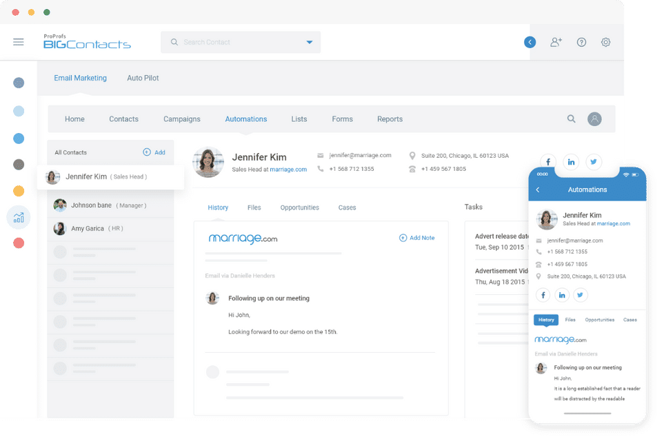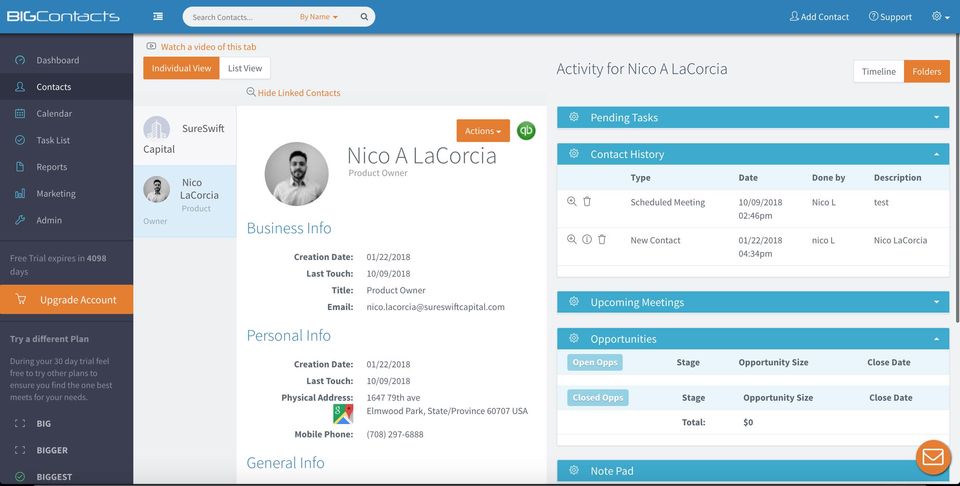 BigContacts is the CRM Software used for the below functionalities.