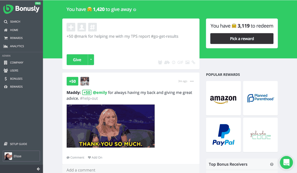 Top 5 Bonusly features