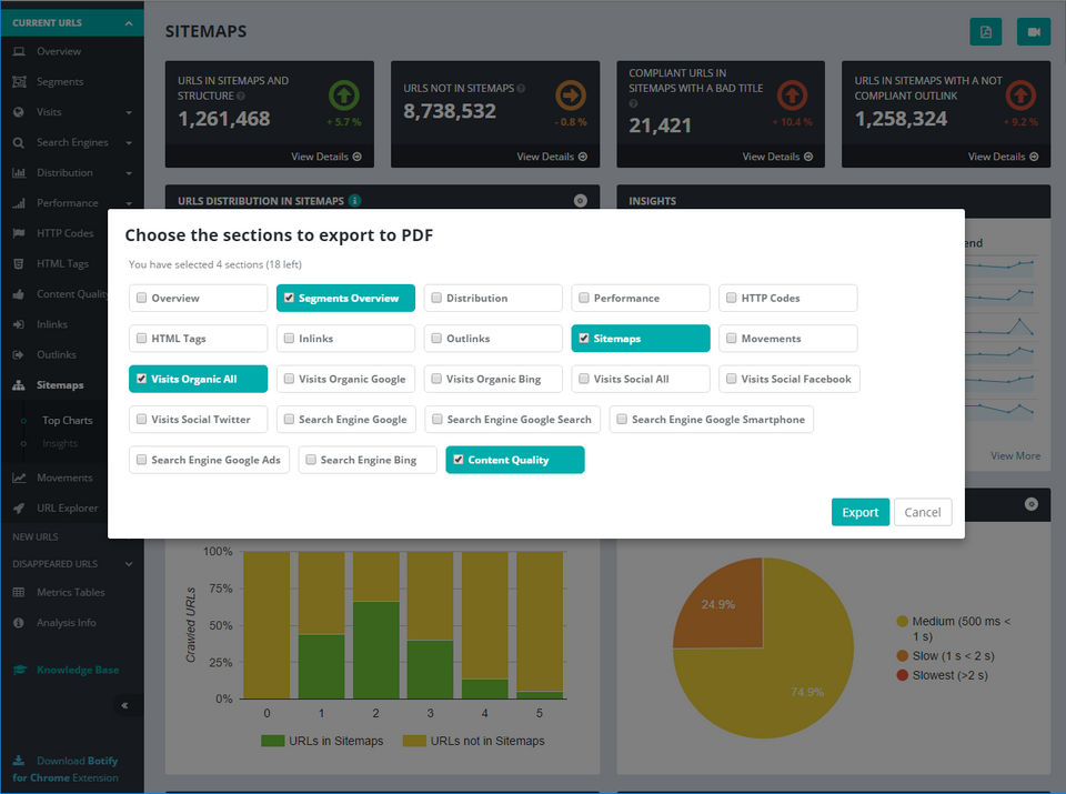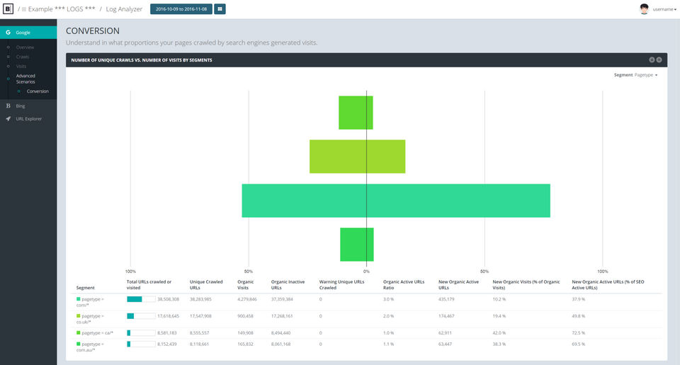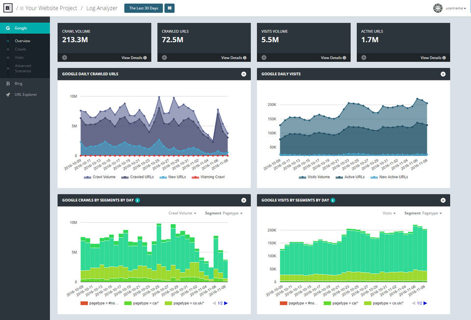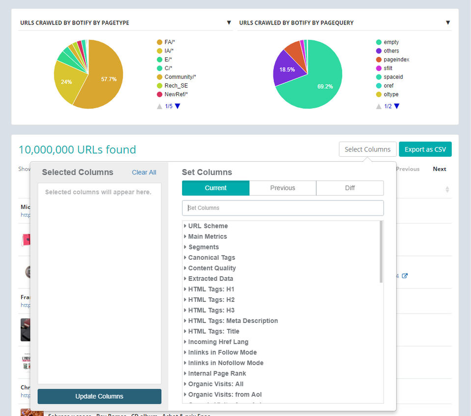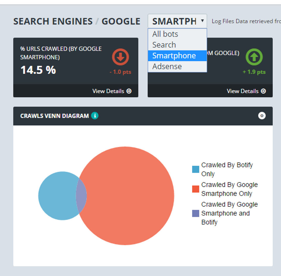 Botify is advanced log analysis, advanced segmentation, content analysis. It allowed for a very in-depth look at your site, with the ability to compare changes over time..