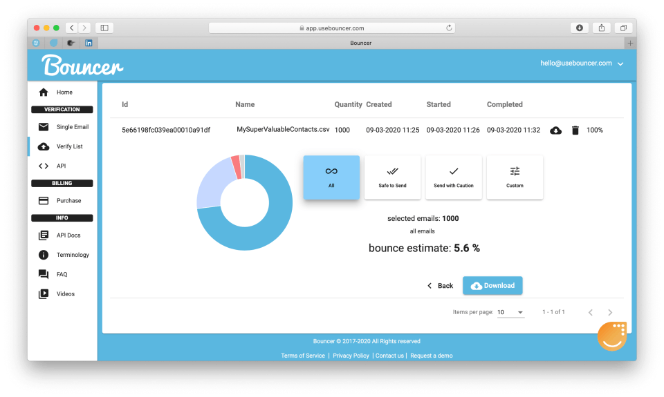 With Bouncer, users can verify emails in real time or in bulk. The platform scans email lists to identify and remove invalid, duplicate, or disposable addresses, minimizing hard bounces that could lead to spam filtering or blocked domains. This process significantly improves email marketing success, ensuring campaigns reach their intended recipients and generate better engagement.