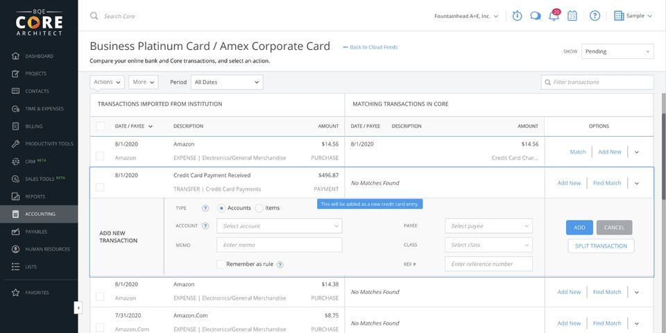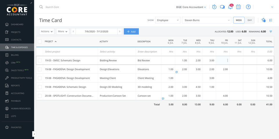 BQE Core Suite is the Business Management Software used for the below functionalities.