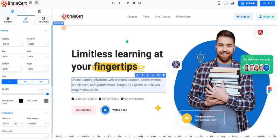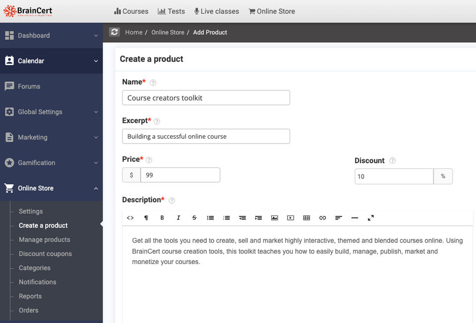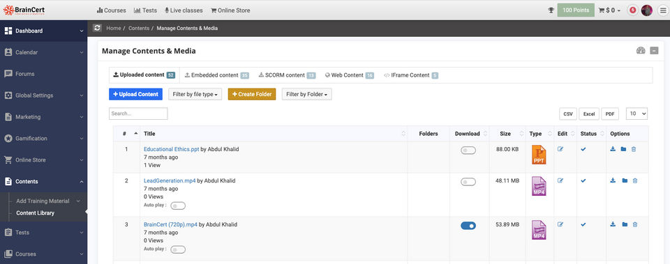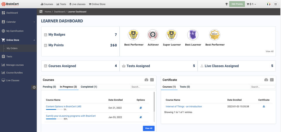 I like that BrainCert presents a unified platform for multiple learning resources for each course.