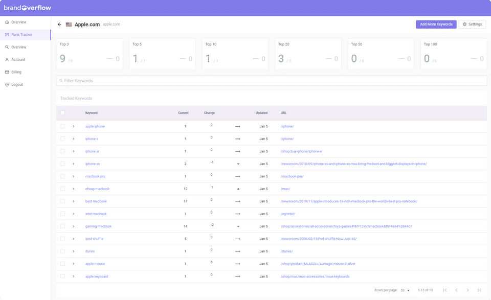 - Tracked Keywords - 50