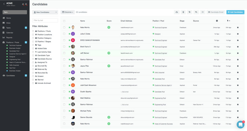 Breezy HR is the Applicant Tracking System used for the below functionalities.
