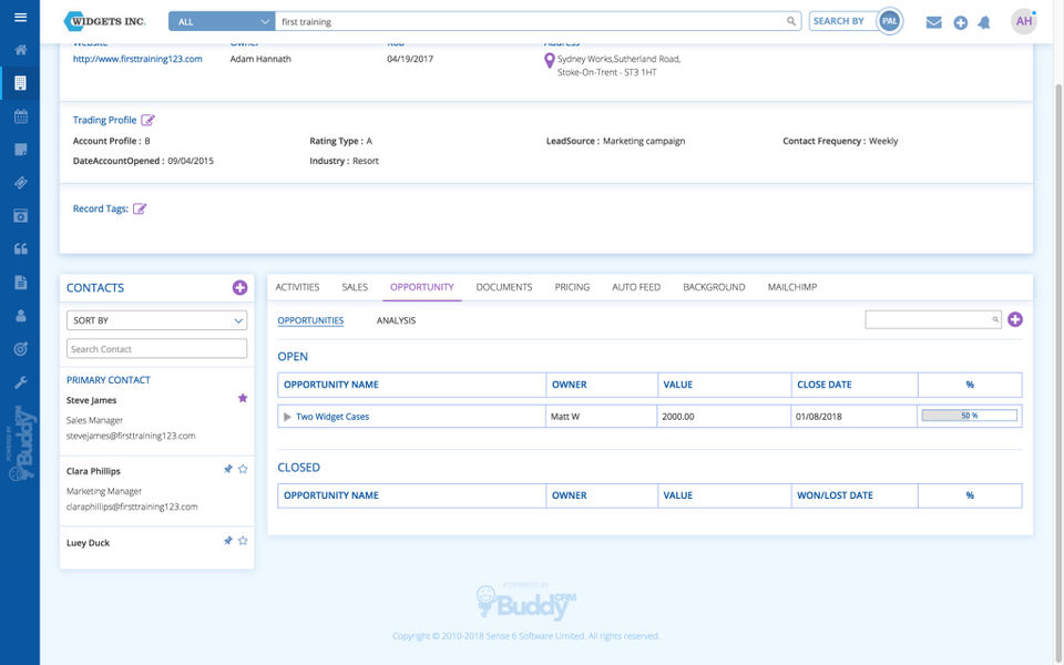 The last couple of years has seen our business move into global franchises - Buddy CRM allows us to have duplicate accounts for each franchise and access to those accounts for a full HQ overview.