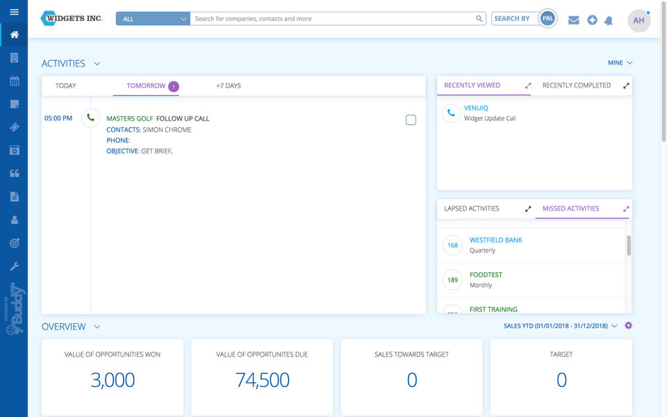 Buddy CRM is a great CRM package that can be addapted to any business situation. Buddy CRM have customzied several areas of the platform to align with our needs. The support is fast and effeceint with a memeber of the team always contactable.