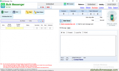 Alpha Bulk Message provide easy to use & reliable whatsapp marketing services with quick online support. Send unlimited whatsapp messages to your customers & clients.