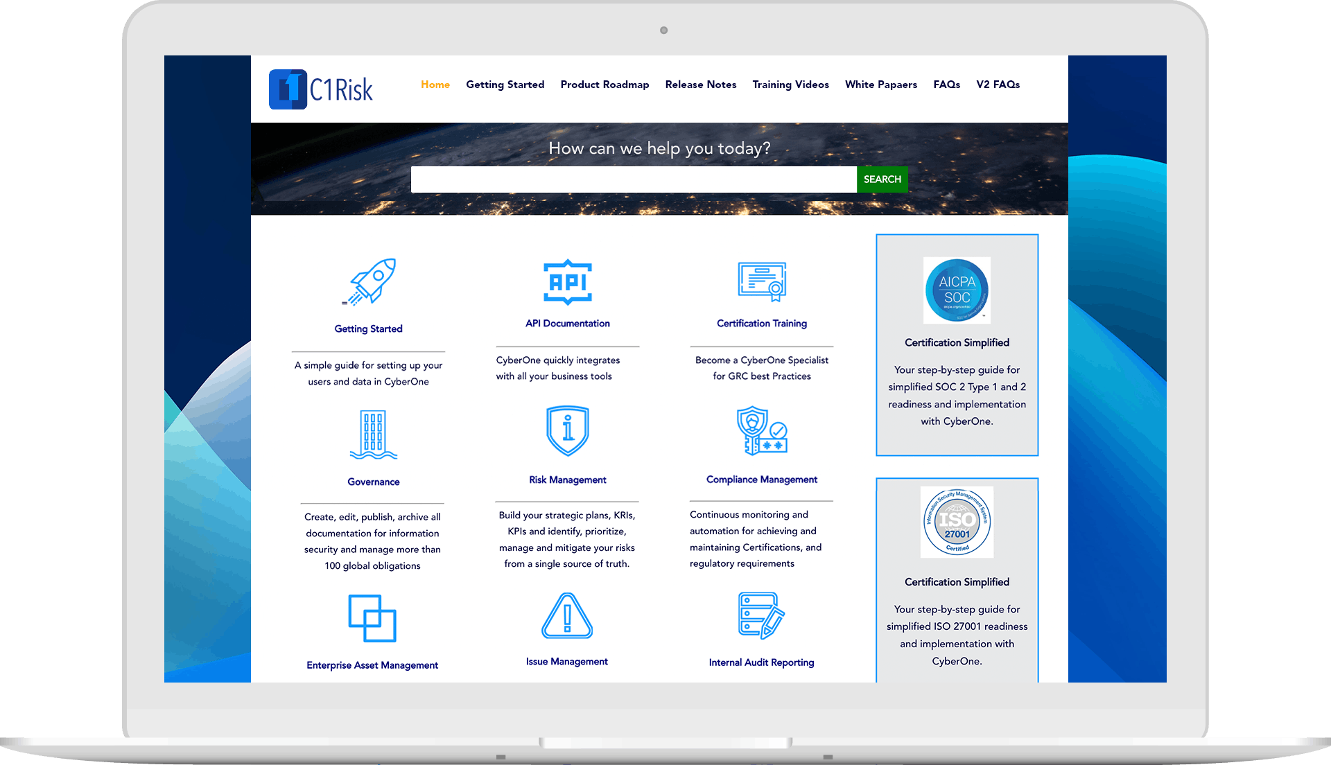 C1Risk provides Blogs,Help Guides,On-Site Training,Webinars,Video Guides for the software training.