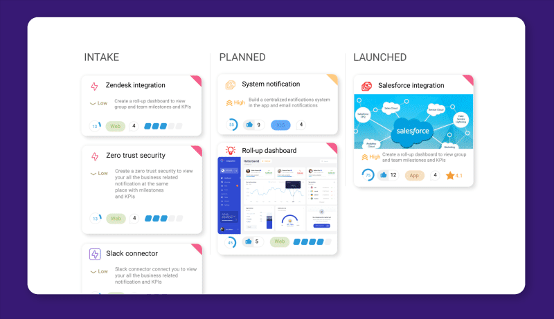 - Connect customer feedback to features to support your prioritization and planning