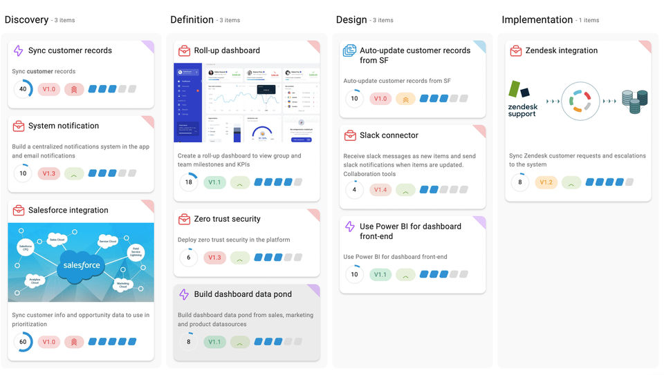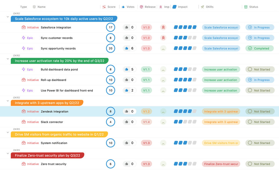 - Visualize feature priorities and the why behind the what using related records and hierarchy