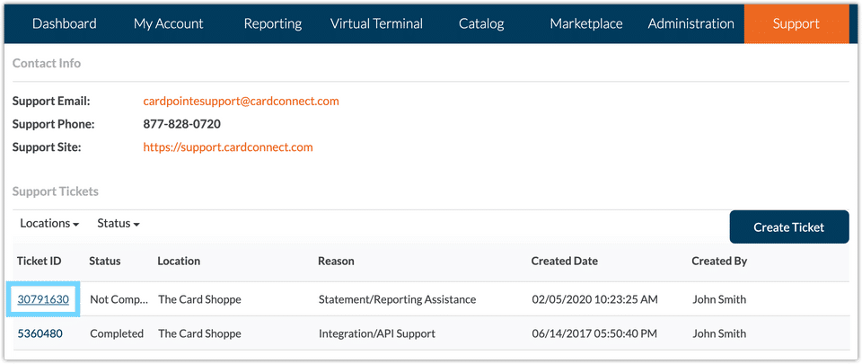 CardConnect provides Phone,Online (Ticket),Business Hours support.