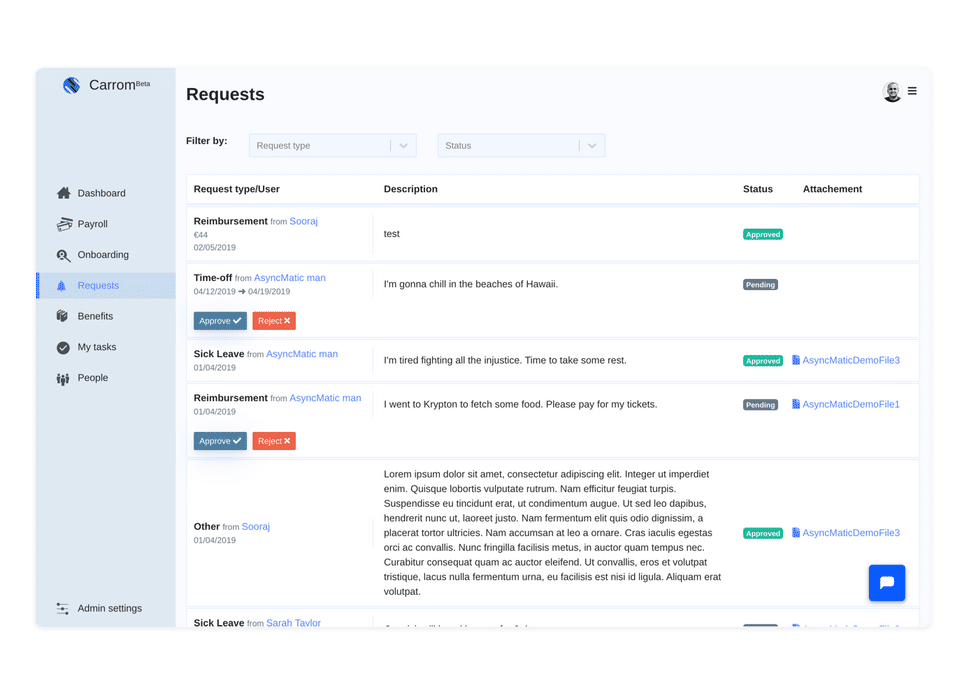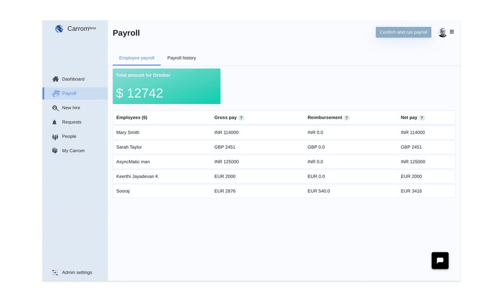 Carrom is the HR Software used for the below functionalities.