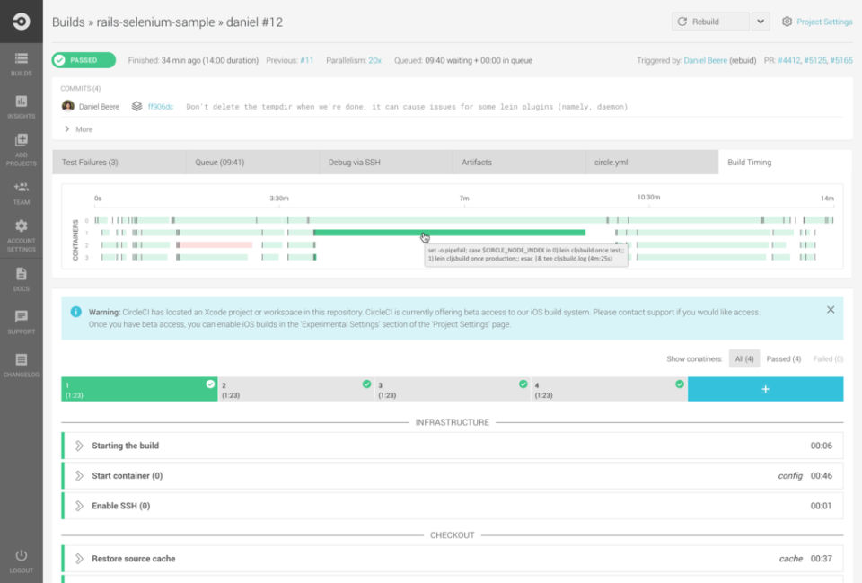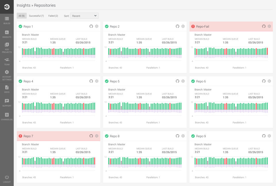 CircleCI makes it difficult to get a comprehensive view of what tests are running vs. what tests have run on each branch or remote. Compared to other tools I've used -- like TeamCity -- It feels like you really have to go searching to understand what's happening with your builds. It's not easy to see in one place what builds are in the queue, what the success vs. failure trend has been over several builds, or even to understand what builds have run longer than others or why. In addition, CircleCI is not as flexible when it comes to dependencies between projects, or using CircleCI to perform automated deployments. Finally, my biggest concern is that CircleCI seems to perform slowly -- it feels very slow and clunky to go from screen to screen.