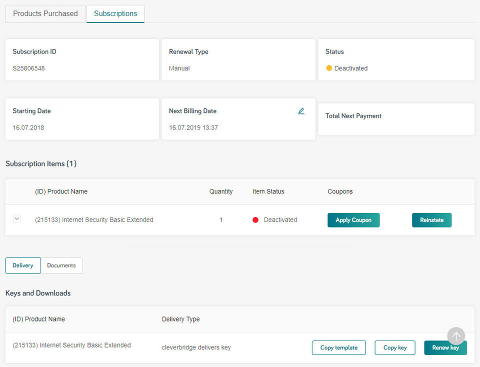cleverbridge is the Ecommerce Software used for the below functionalities.