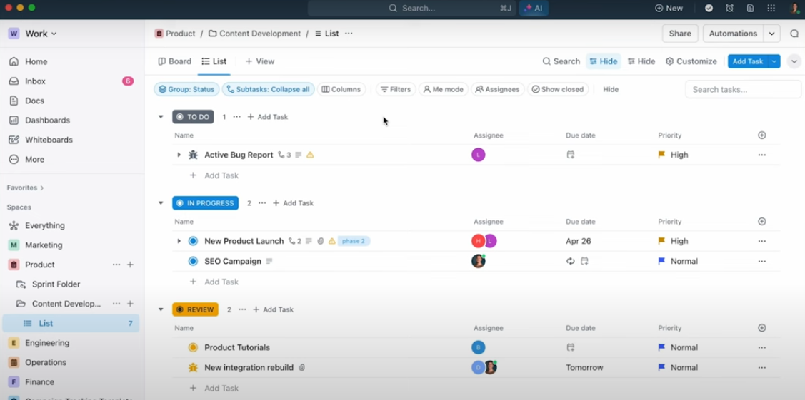 Top 5 ClickUp features
