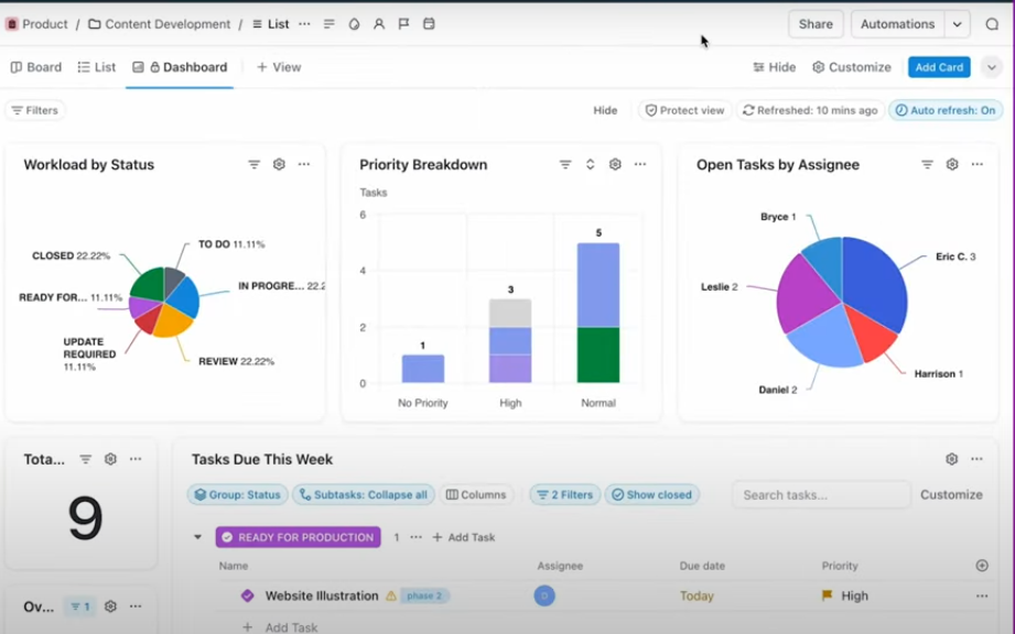 ClickUp is the Project Management Software used for the below functionalities.