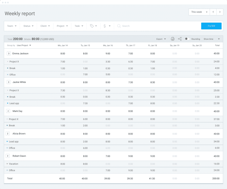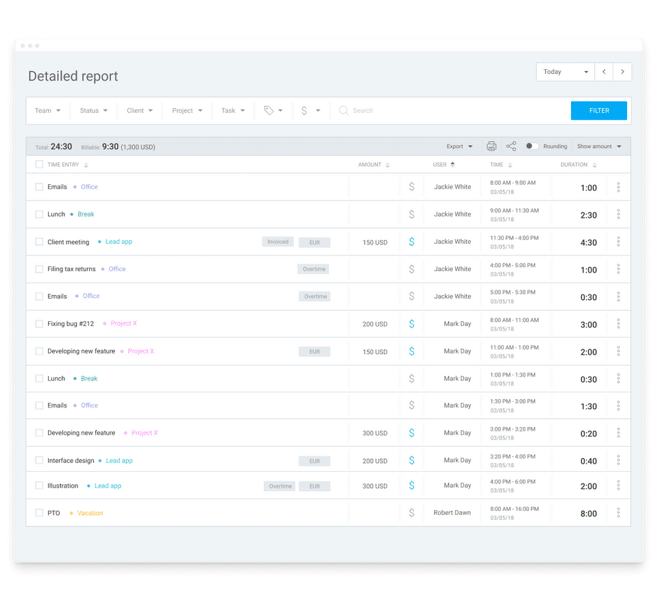 We're able to track how much time our teams are dedicating to specific clients.