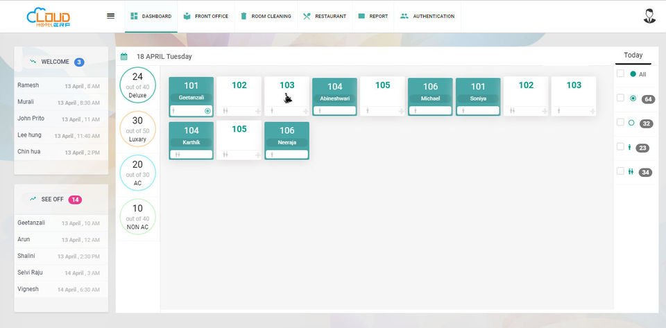 Cloud Hotel ERP is the Hotel Management Software used for the below functionalities.