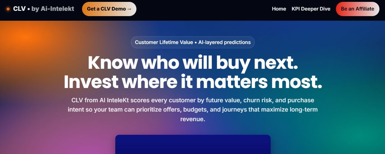 In current competitive business landscapes, simply acquiring customers is no longer sufficient: retaining and extracting maximum value from each customer is now essential. CLV by Ai-InteleKt addresses this challenge by focusing analytics and orchestration on the lifetime value of customers — not just one-off transactions. The platform starts by integrating and cleaning data from diverse sources — transactional history, web interactions, point-of-sale systems, customer support logs — building a unified customer graph. With this foundation it applies machine-learning models tuned for key verticals such as retail and telecom to generate three core scores: future value (how much this customer will spend), churn risk (how likely they are to drop off) and purchase or re-purchase intent (which next-action they’re likely to take).