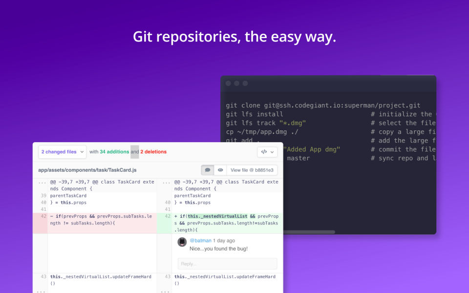 Codegiant enables me and my team to work seamlessly and finish projects more rapidly. That is because the interface has a fully hosted Git platform that supports seamless team collaboration. As such, i can approve and review code while resting assured everyone is on the same page.Instead of spreading my workflow management across different platforms, i can bring all my supervising tasks under control in a single interface. Codegiant aids me in this through its continuous integration feature that allows me to build custom workflows and timelines.!
